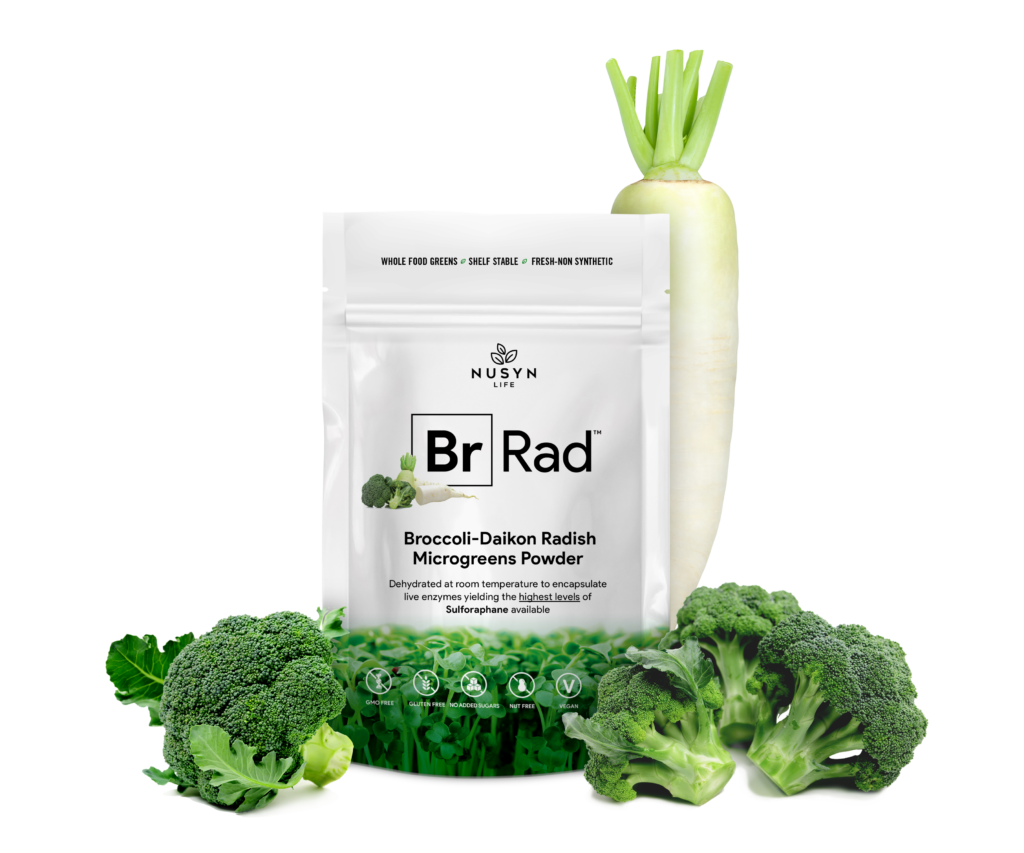 BrRad is simply fresh Micro-Green Broccoli and Radish in it’s highest concentration. Grown in 100% Organic Material the source Micro-Greens are then harvested and air dried to keep all nutritional values intact. Live enzymes are the reason this product has the highest levels of Sulforaphane (SFN) available.